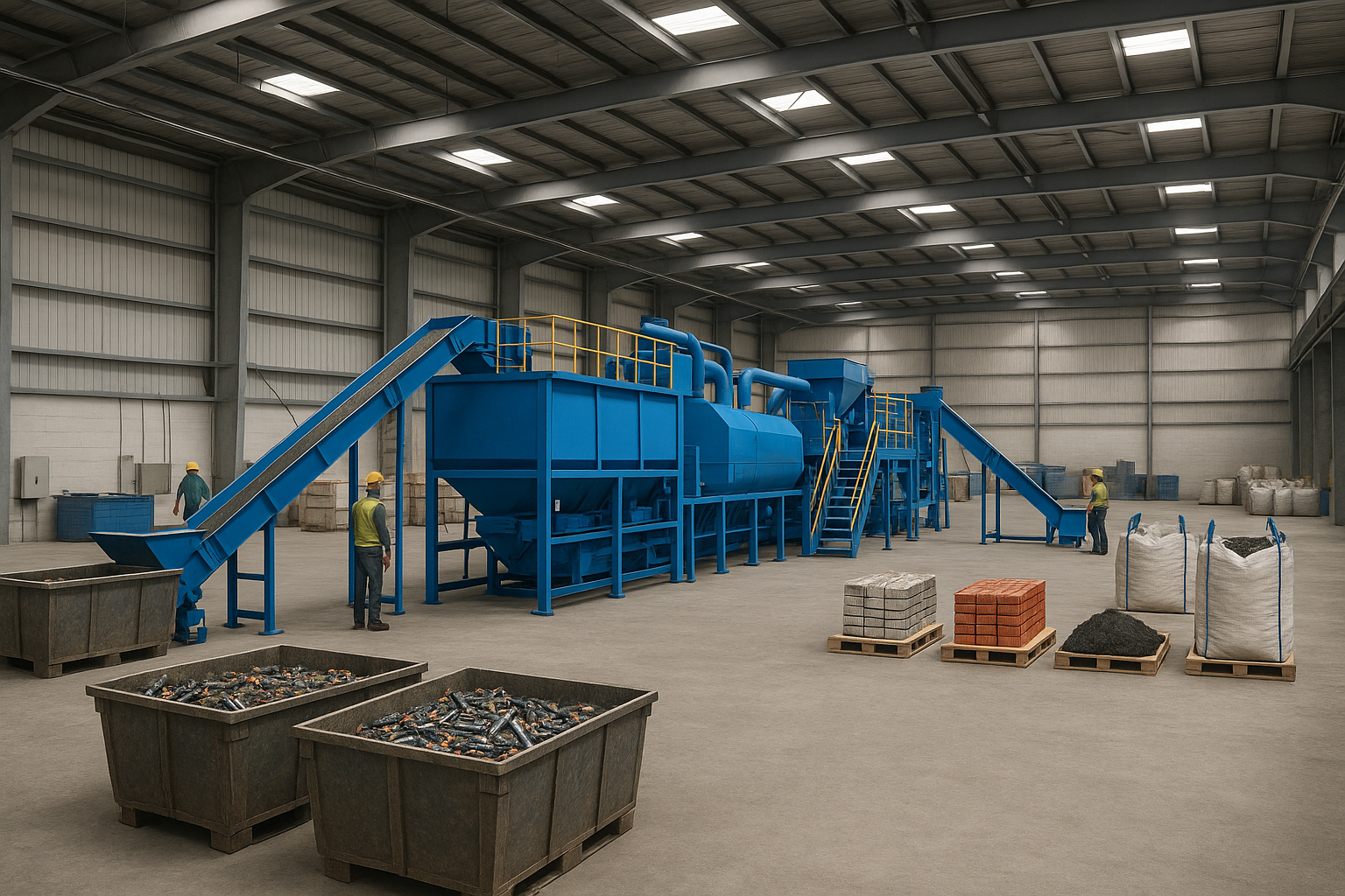Projektowana linia technologiczna umożliwi mechaniczny odzysk metali z zużytych baterii Li-Ion po ich wcześniejszej neutralizacji w systemie ECO-DISCHARGE™. Proces obejmuje rozdrabnianie, separację magnetyczną i wirową, dzięki czemu odzyskujemy miedź, aluminium, stal oraz czarną masę zawierającą lit, kobalt i nikiel.